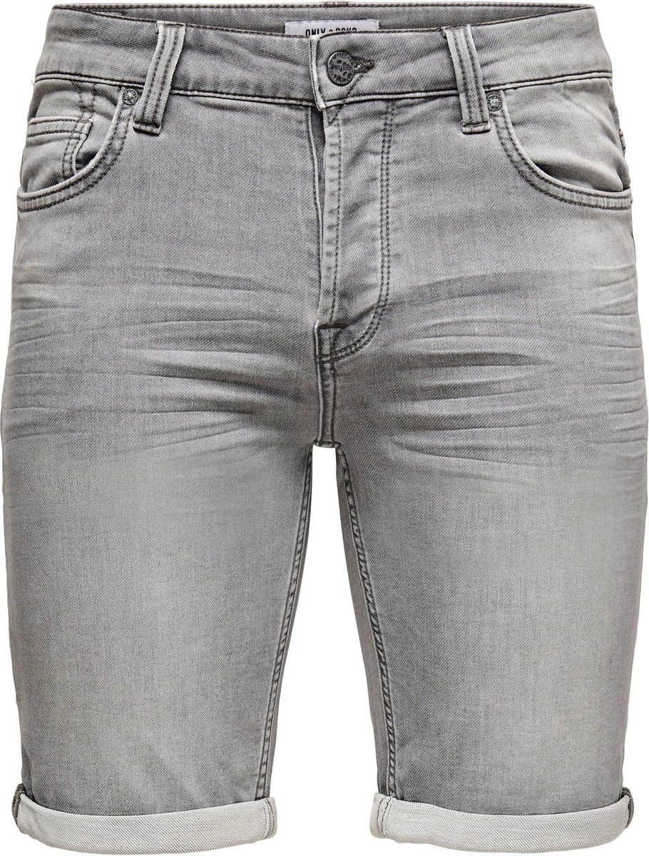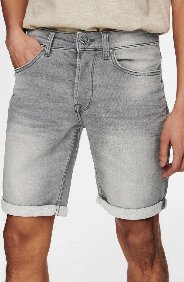 ONLY&SONS Short in grijze denim wash, sweat stof en regular fit.