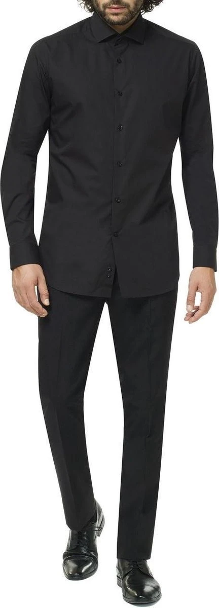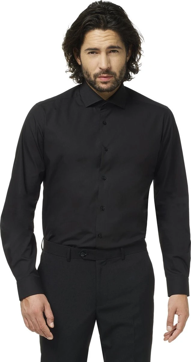 Houd je wel van wel van een beetje kleur in je outfit en ben je op zoek naar een feestelijk overhemd voor heren om onder je pak te dragen? Dit zwarte button-up overhemd van OppoSuits heeft een moderne pasvorm en is daarnaast ook nog comfortabel. Het overhemd voor mannen is gemaakt van een hoogwaardige katoen-polyester mix en is speciaal ontworpen om onder een pak te dragen, dus hij is lang genoeg om in je pantalon te stoppen en blijft daar netjes in zitten. Verder kan dit overhemd voor volwassenen eindeloos gecombineerd worden en gedragen worden naar allerlei gelegenheden; of je nu een zakelijk evenement of een feestje bezoekt. Combineer dit opvallende blauwe shirt bijvoorbeeld met een formeel pak voor een zakelijke look of met speelsere herenkleding om het meer casual te maken. Overigens kan het overhemd gewoon in de wasmachine en kreukt ‘ie nauwelijks. Als je het leuk vindt als iedereen nog eens omkijkt als je langsloopt, is deze blouse met lange mouw en kraag ook ideaal om te matchen met een kleurrijk pak van OppoSuits. Het merk biedt overhemden en pakken in allerlei kleuren en prints, waarvan elke man er minimaal een in zijn garderobe zou moeten hebben om zijn outfits een stukje levendiger te maken.