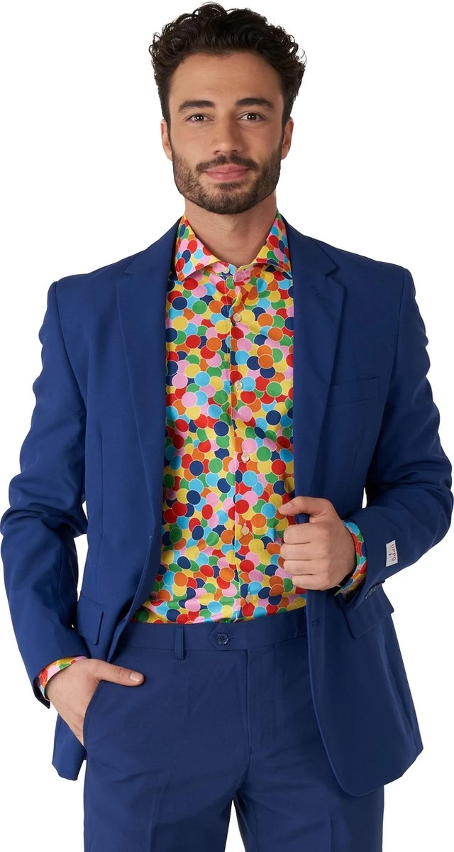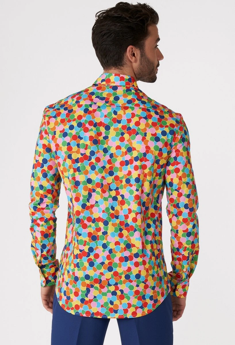Het Confetteroni pak is nu beschikbaar in een feestelijk overhemd. Zoals je ongetwijfeld weet, is confetti het beste type papier dat er bestaat, want waar confetti is, is feest. Dit shirt met lange mouwen is ontworpen voor en door feestbeesten en met dit shirt pak jij de spotlight op je volgende fuif. Bam! *confetti shot*