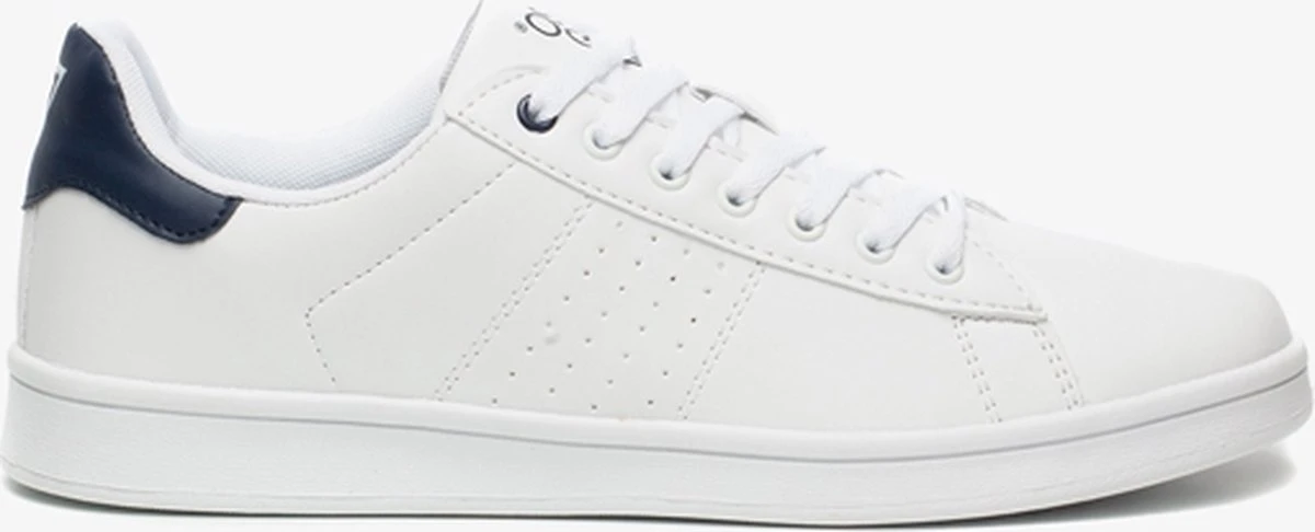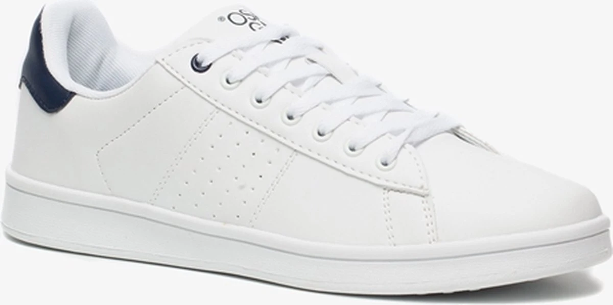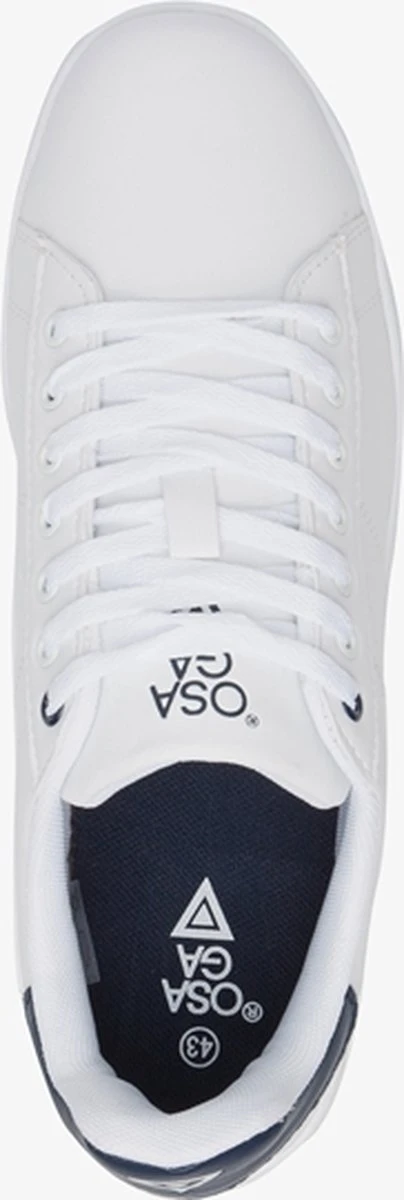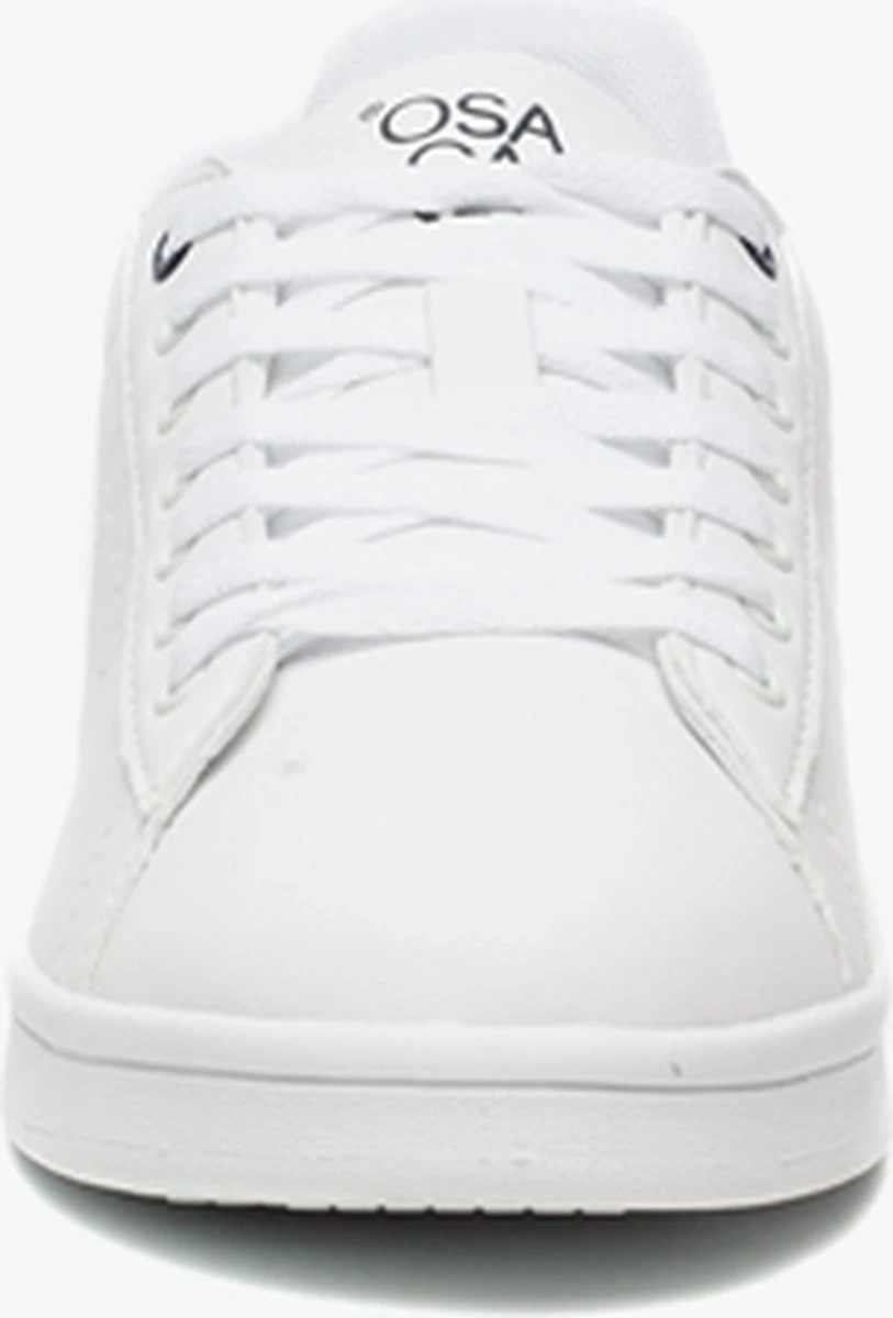 Witte sneakers voor heren uit de Osaga collectie. Gemaakt van imitatieleer, een binnenwerk van textiel en een stevige profielzool van rubber. De schoenen hebben een vetersluiting en comfortabel voetbed van textiel. Deze is niet uitneembaar. Voorzien van donkerblauwe accenten op de hiel. Deze klassieke sneakers zijn eindeloos te combineren!
