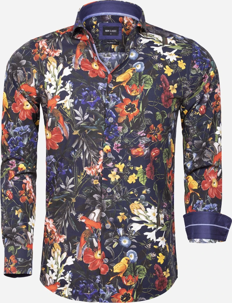 Daarnaast heeft dit overhemd een opvallende print van bloemen en vogels in diverse kleuren. Een echte eyecatcher voor de man die graag opvalt!