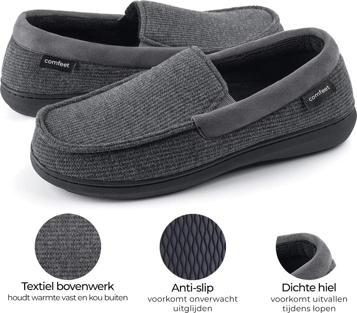 Opzoek naar nieuwe sloffen? Of een hekel aan koude voeten? Ontdek dan de pantoffels van Comfeet. Trek aan. Met de fleece voering en traagschuim zool zijn jouw voeten binnen 5 minuten heerlijk warm. Ontspan. Warm op. Door het traagschuim voetbed loop je urenlang zonder begin van knie- of voet pijn. Naar buiten voor iets kleins? Doe je ding. De rubberen anti-slip zool voorkomt uitglijden of pijn aan de voeten. Zowel voor binnen- als buitenshuis. Ongeacht de drukte van de dag: warm op, relax en kom je helemaal tot jezelf met Comfeet.