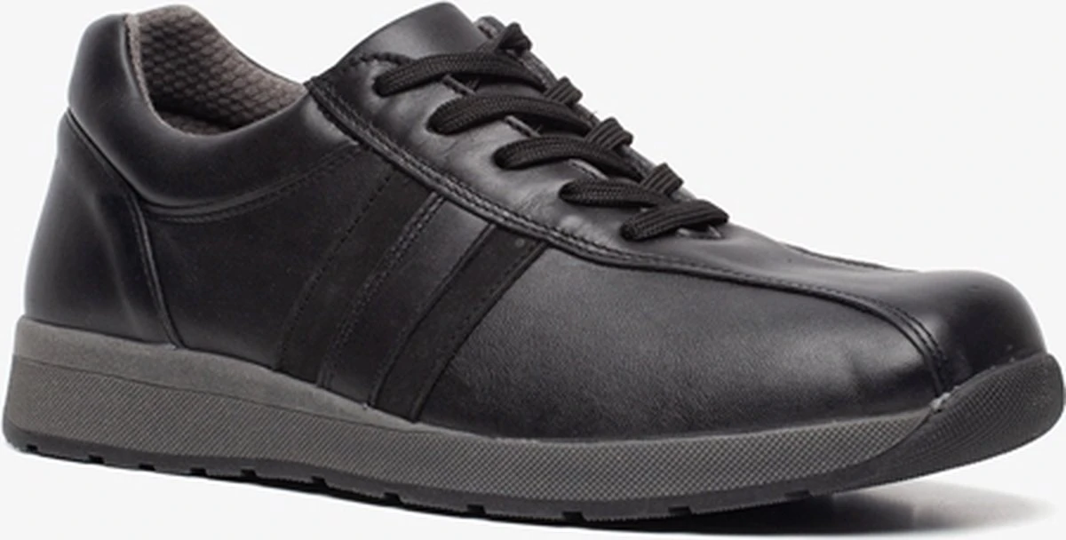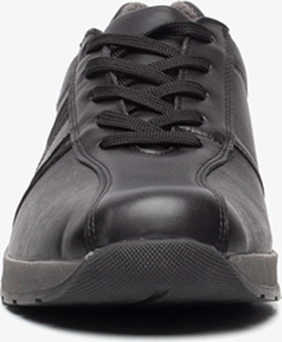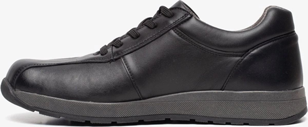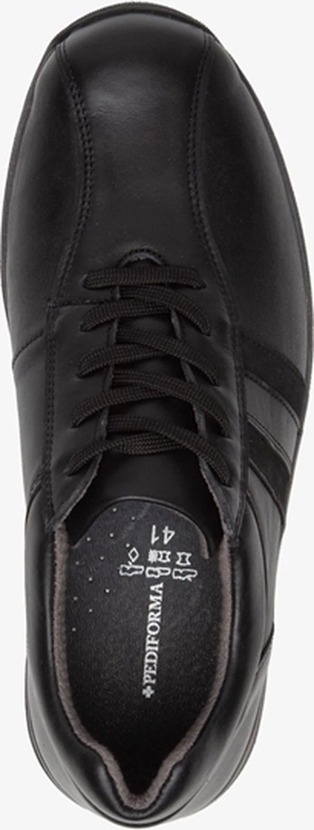 Zwarte diabetesschoenen voor heren van Pediforma. Gemaakt van leer en textiel, een binnenwerk van leer en textiel en een stevige profielzool. De comfortabele schoenen hebben een vetersluiting en uitneembaar voetbed van leer. Aan de zijkanten van de neus is stretch aangebracht zodat de scoenen niet knellen. Diabetesschoenen zijn voorzien van een gladde naadloze afwerking, een gelijkmatige drukverdeling onder de voetzool, ruimte voor de tenen, een sluiting die niet kan knellen, natuurlijke en anti-allergene materialen en de mogelijkheid om er steunzolen in te dragen.