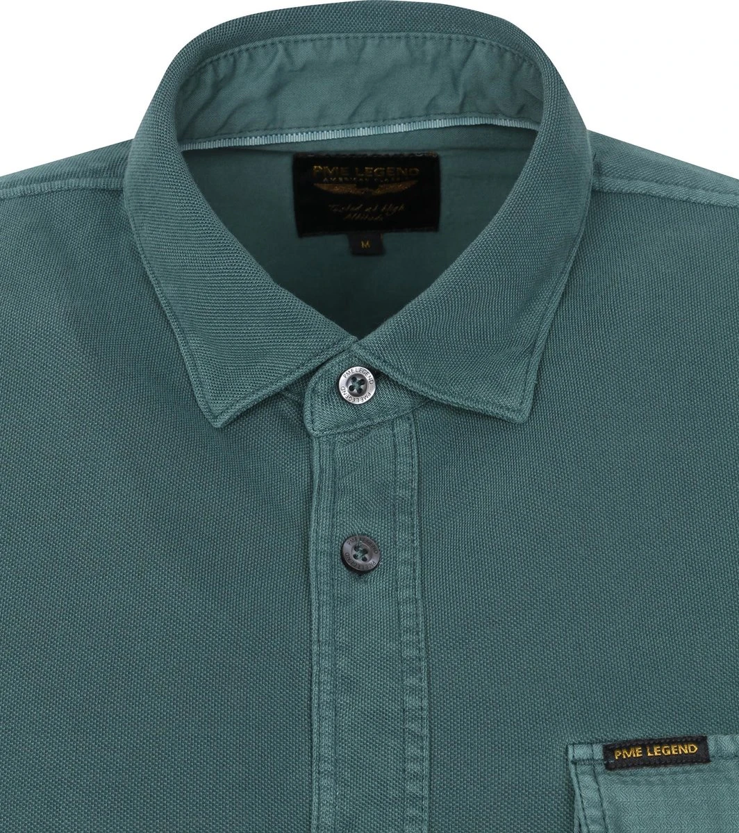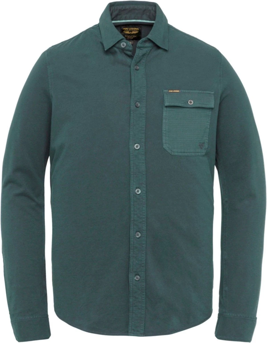 PME Legend Overhemd Garment Dye Donkergroen in de kleur Groen en Donkergroen met een pasvorm Modern-fit is gemaakt van Katoen met Enkel manchet met een Effen dessin en Lange mouw.