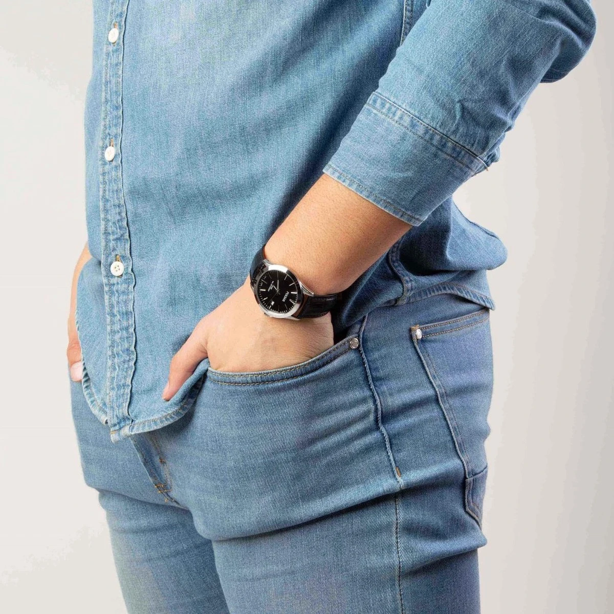 Dit horloge is voorzien van een schroefkroon. De tijd instellen gaat op een verschillende manier, afhankelijk van het type model dat je hebt. Belangrijk hierbij is dat je de kroon op de juiste manier uit het horloge trekt. Bij contact met water moet je er wel voor zorgen dat de kroon gesloten. Bekijk de handleiding op deze productpagina om te kijken hoe je de tijd bij dit horloge moet instellen.