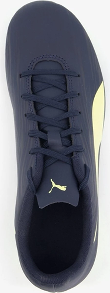 Zwarte Puma Rapido III voetbalschoenen voor heren. Gemaakt van imitatieleer met een binnenwerk van textiel en een lichte zool van rubber. De Multiground noppenconstructie is een mix van AG (kunstgras) en FG (natuurgras) noppen, dit maakt dat de schoenen geschikt zijn voor kunst- en natuurgrasvelden. Door de vetersluiting hebben deze schoenen altijd de juiste pasvorm. Voorzien van felgroene merkopdruk op het bovenwerk. Binnenzool is niet uitneembaar.