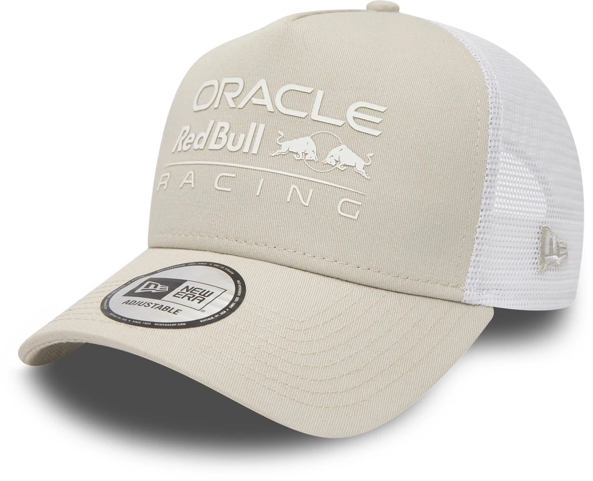 Oracle Red Bull Racing Seasonal Trucker Cap Beige 2023 Deze seasonal trucker cap komt uit de officiële Oracle Red Bull Racing collectie van 2023, Max Verstappen en Sergio Perez rijden dit jaar voor Oracle Red Bull Racing en gaan de strijd aan om wereldkampioen te worden, De cap is een trucker cap met aan de achterkant een druksluiting, Op de voorkant van de cap staat het logo van Oracle Red Bull Racing in het wit, De achterkant van de cap is ook wit, De voorkant van de cap is gemaakt van 100% katoen, De achterkant van de cap is gemaakt van 100% polyester, – 100% katoen en 100% polyester, – One size, – Ook verkrijgbaar in het groen en blauw, – Druksluiting aan de achterkant, – Adjustable model, – New Era cap,