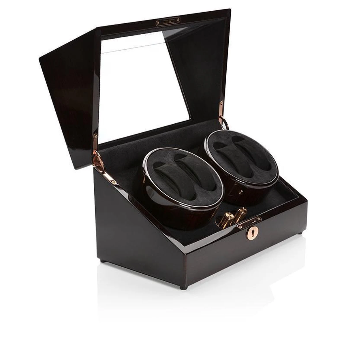 Deze luxe watchwinder biedt ruimte aan 4 automatische horloges en is daarmee hét perfecte opbergsysteem. Daarnaast bestaat de box volledig uit hoogwaardige materialen en is de binnenkant voorzien van luxe afwerkingen en strak design. De zorgvuldig geselecteerde materialen maken de watchwinder meer dan functioneel en uitermate geschikt voor het bewaren en opwinden van exclusieve horloges en grotere klokwerken.