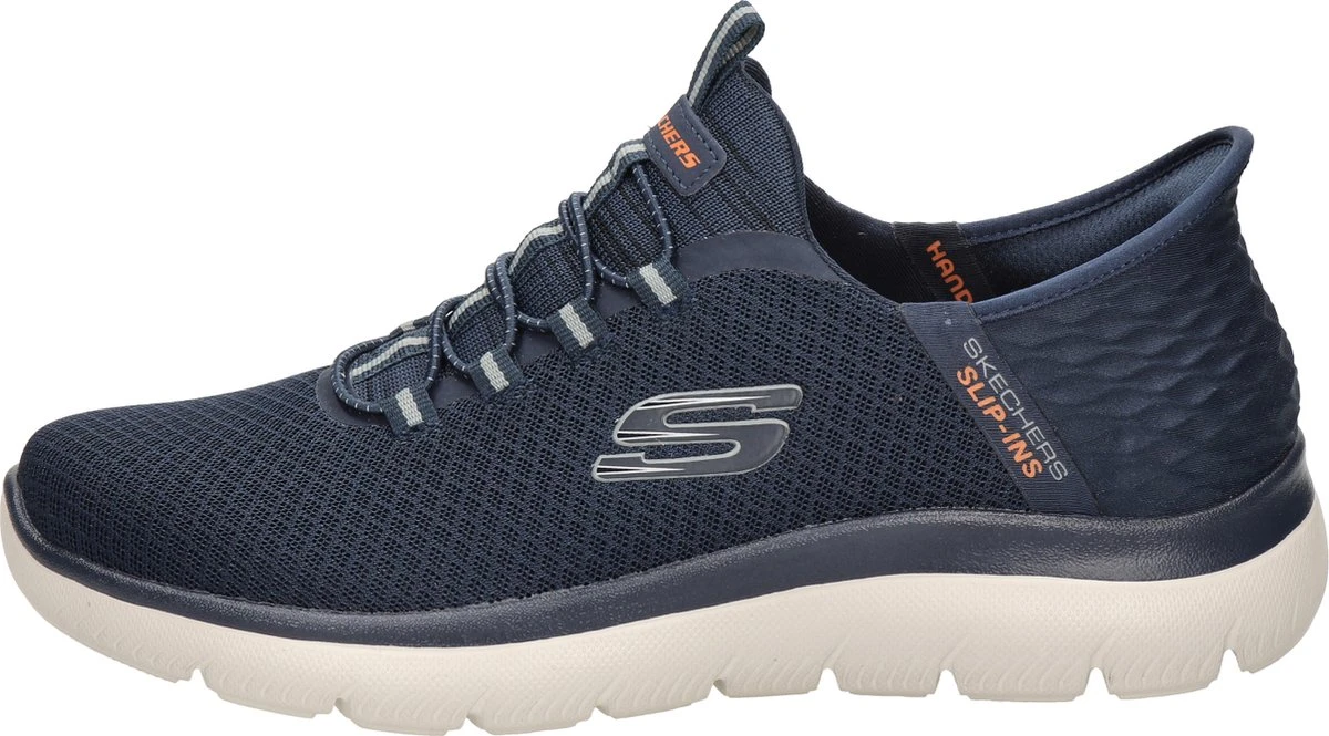 Skechers Summits heren instapschoen. Makkelijker kan Skechers het niet voor je maken! Deze instapper is zo ontworpen dat je hier zonder hulp van je handen instapt en wegloopt. Uitgevoerd in ademend mesh-textiel dat er voor zorgt dat de warmte uit de schoen kan ontsnappen. Door de verstevigde hiel stap je makkelijk de schoen in. Bevat een textielen voering en een gewatteerde enkelkraag voor een fijn draaggevoel om de hiel. Voorzien van een ultra zacht voetbed van Air-Cooled Memory-foam wat voor een optimale demping zorgt en zich vormt naar de voet. Afgewerkt met een flexibele rubberen loopzool die bijdraagt aan de demping die de schoen biedt.