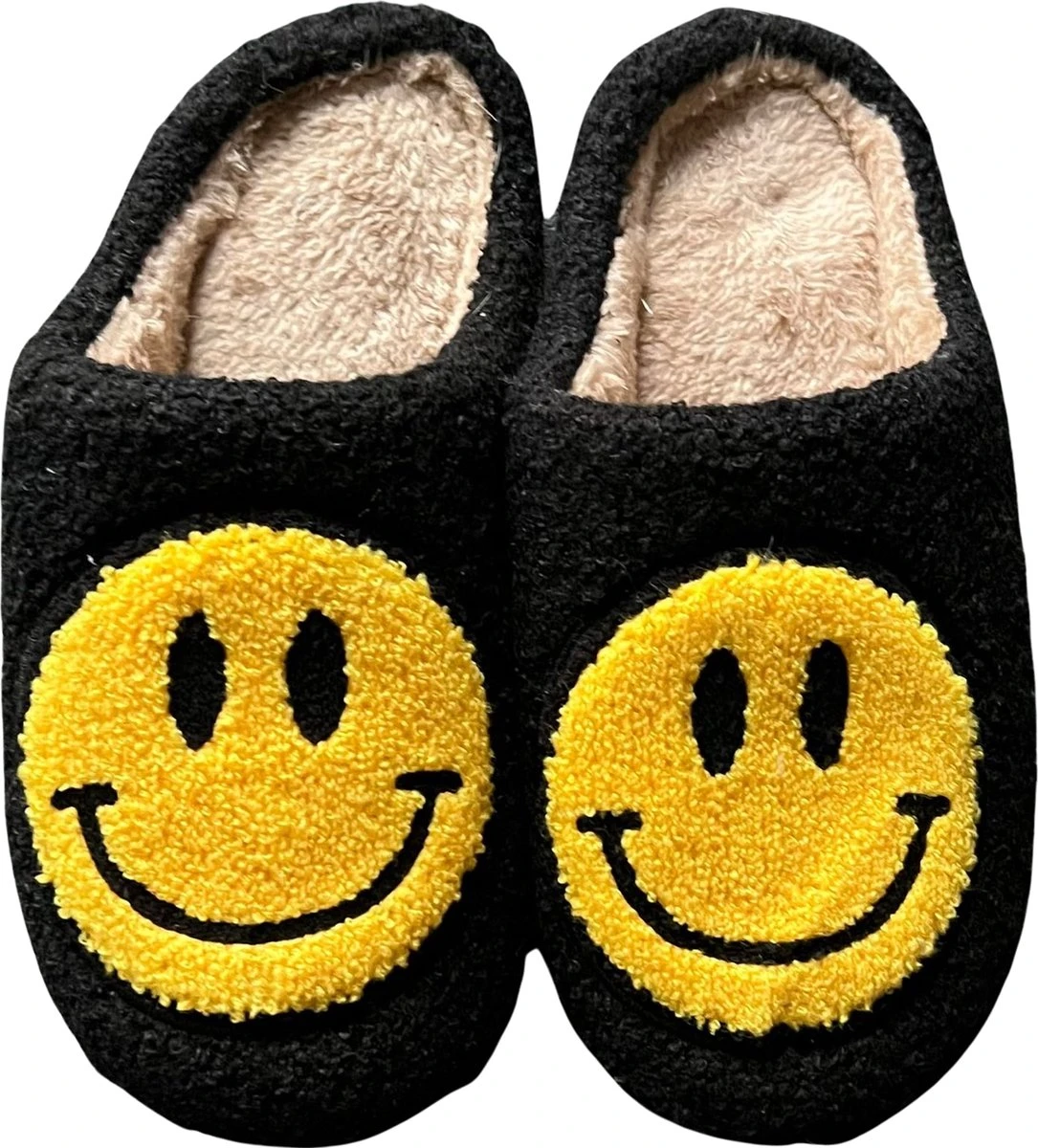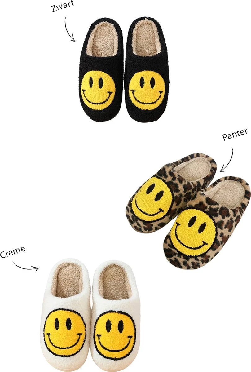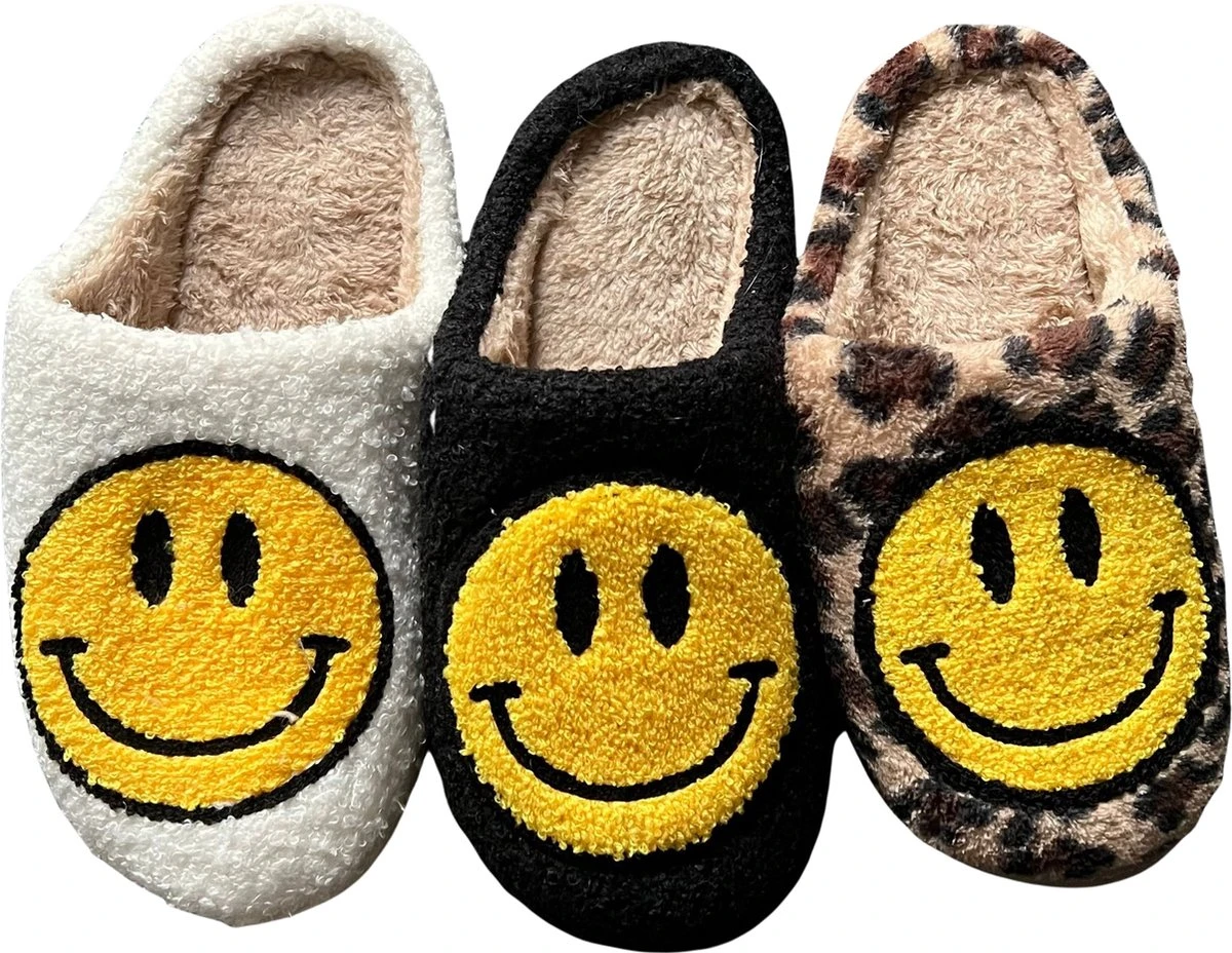 Hier word je toch vrolijk van! Combineer je comfy chill-outfit met deze hippe Smiley sloffen. Dit trendy design voelt heerlijk zacht & warm aan je voeten. Heb jij moeite met opstaan? Als je deze zachte sloffen met smiley embleem naast je bed ziet staan word je meteen weer happy.