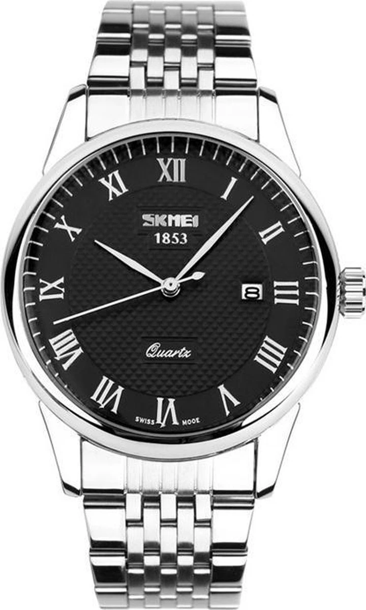 Dit robuuste herenhorloge is vervaardigd uit krachtig edelstaal. De kast is 38 mm breed en 12 mm hoog. Romeinse cijfers sieren de wijzerplaat. Het glas is krasbestendig en het uurwerk is quartz.