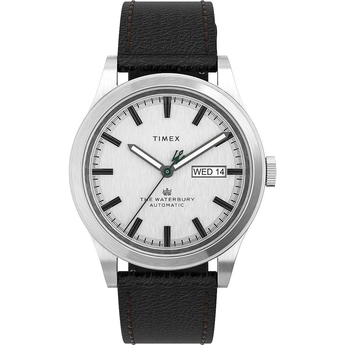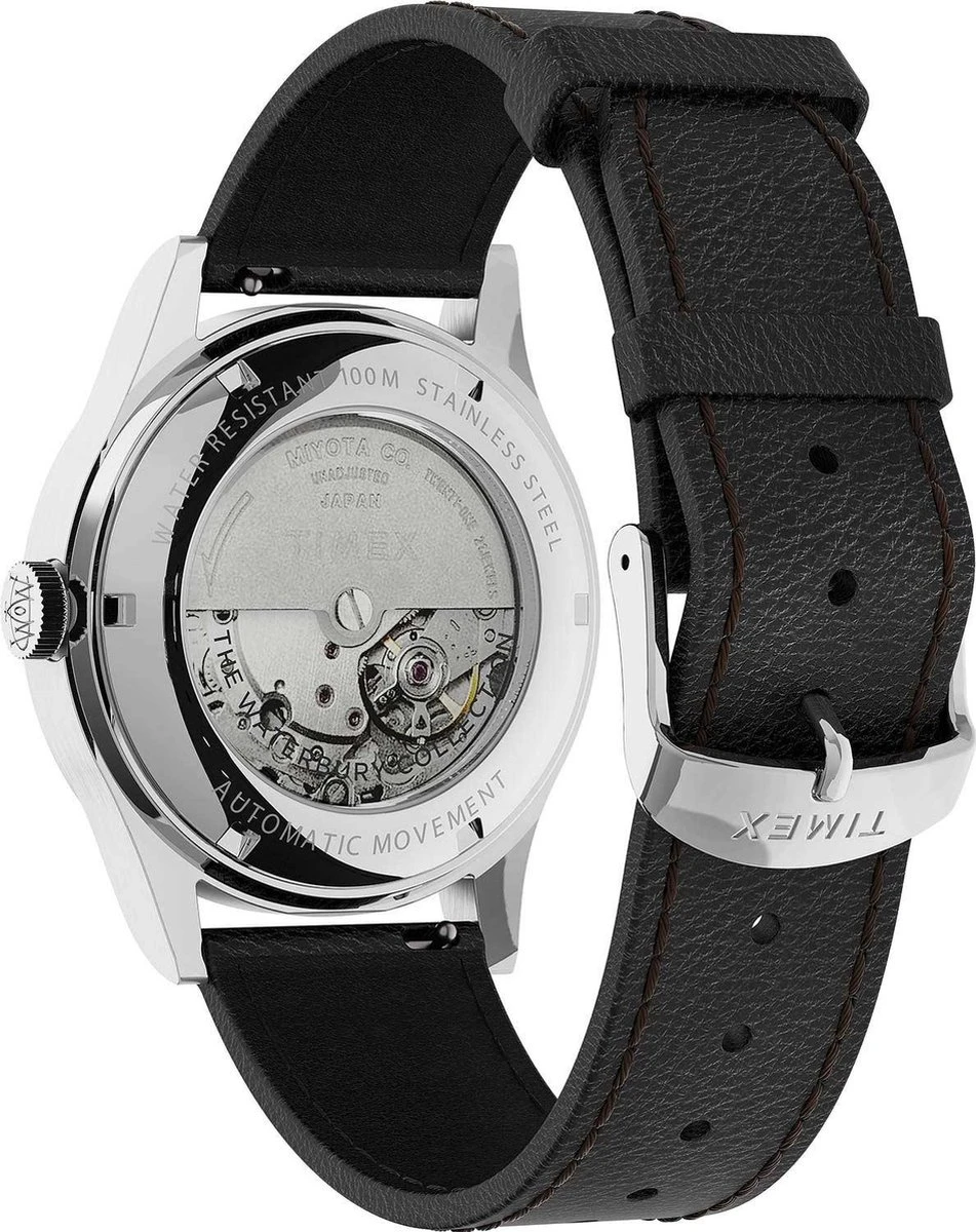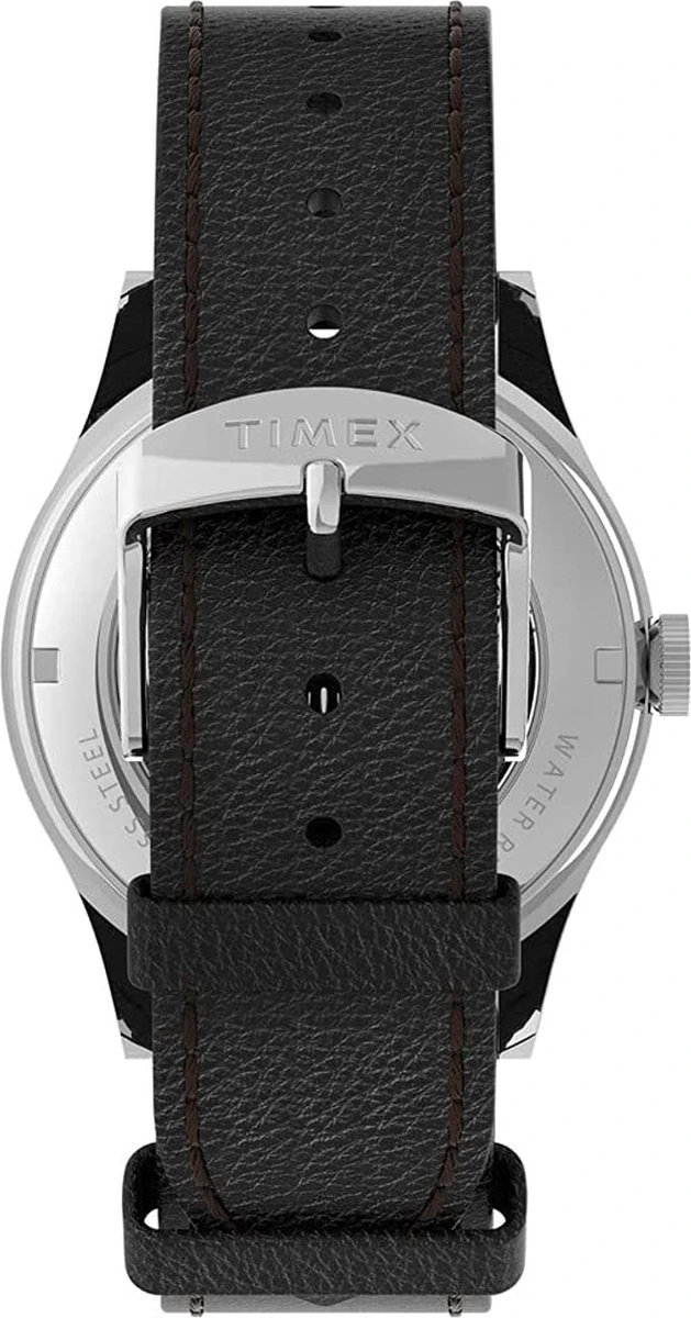 Dit Timex Mannen horloge beschikt over een Automatisch binnenwerk. De kast (38 mm) is vervaardigd uit Staal (Zilverkleurig) en heeft een Mineraalglas. De band is Zwart Leer. Dit horloge uit de Waterbury Traditional Automatic reeks is een mooi en tijdloos geschenk. Verras jezelf of iemand anders met dit cadeau. Bovendien geniet u hierbij van 2 jaar garantie tegen alle fabricagefouten.