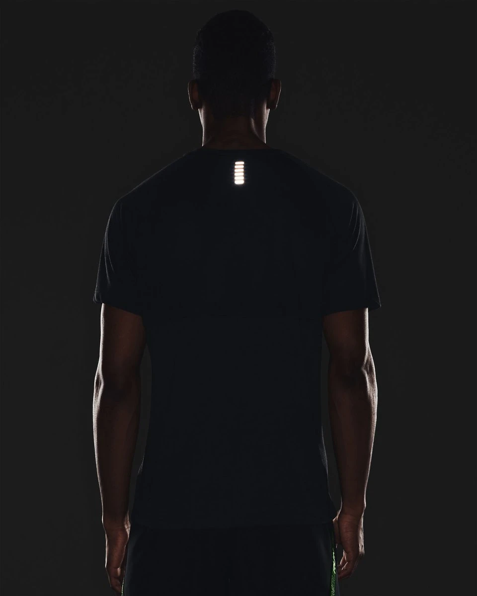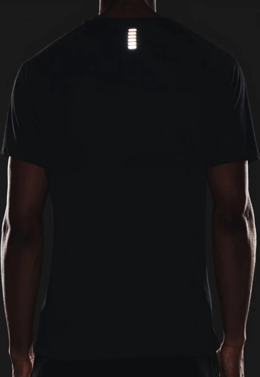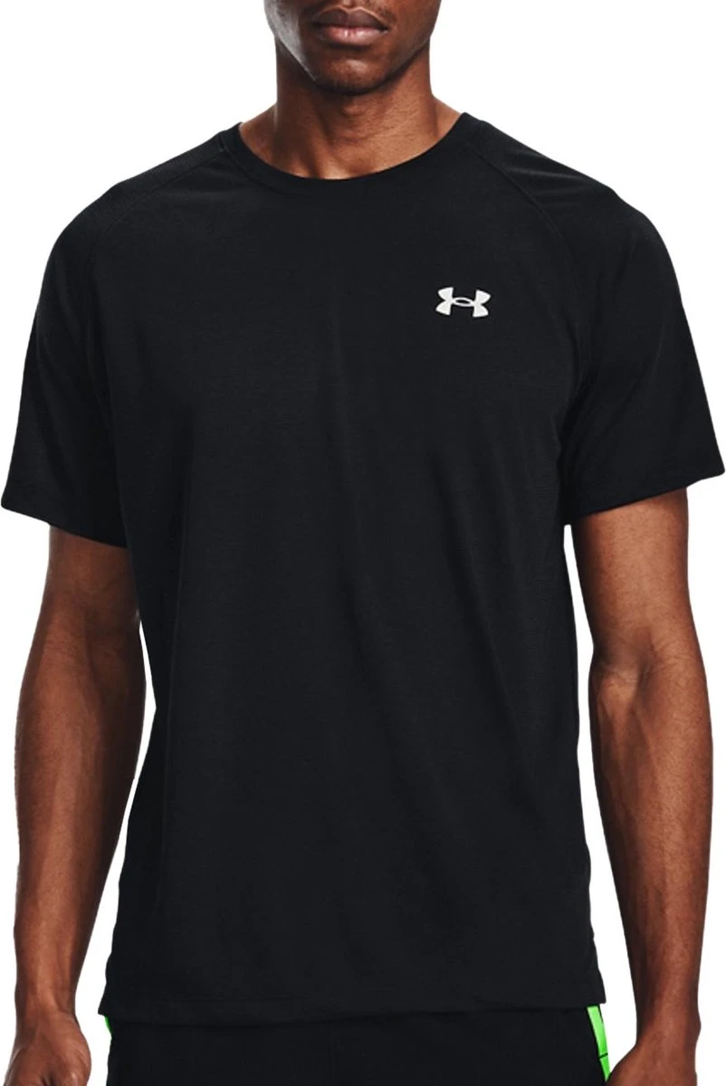 UA Microthread-stof is recyclebaar, droogt sneller, plakt niet en rekt mee zonder zweet vast te houden;Het materiaal voert zweet af en droogt zeer snel;Vlakken van mesh voor extra ventilatie;Reflecterende details voor hardlopen in het donker