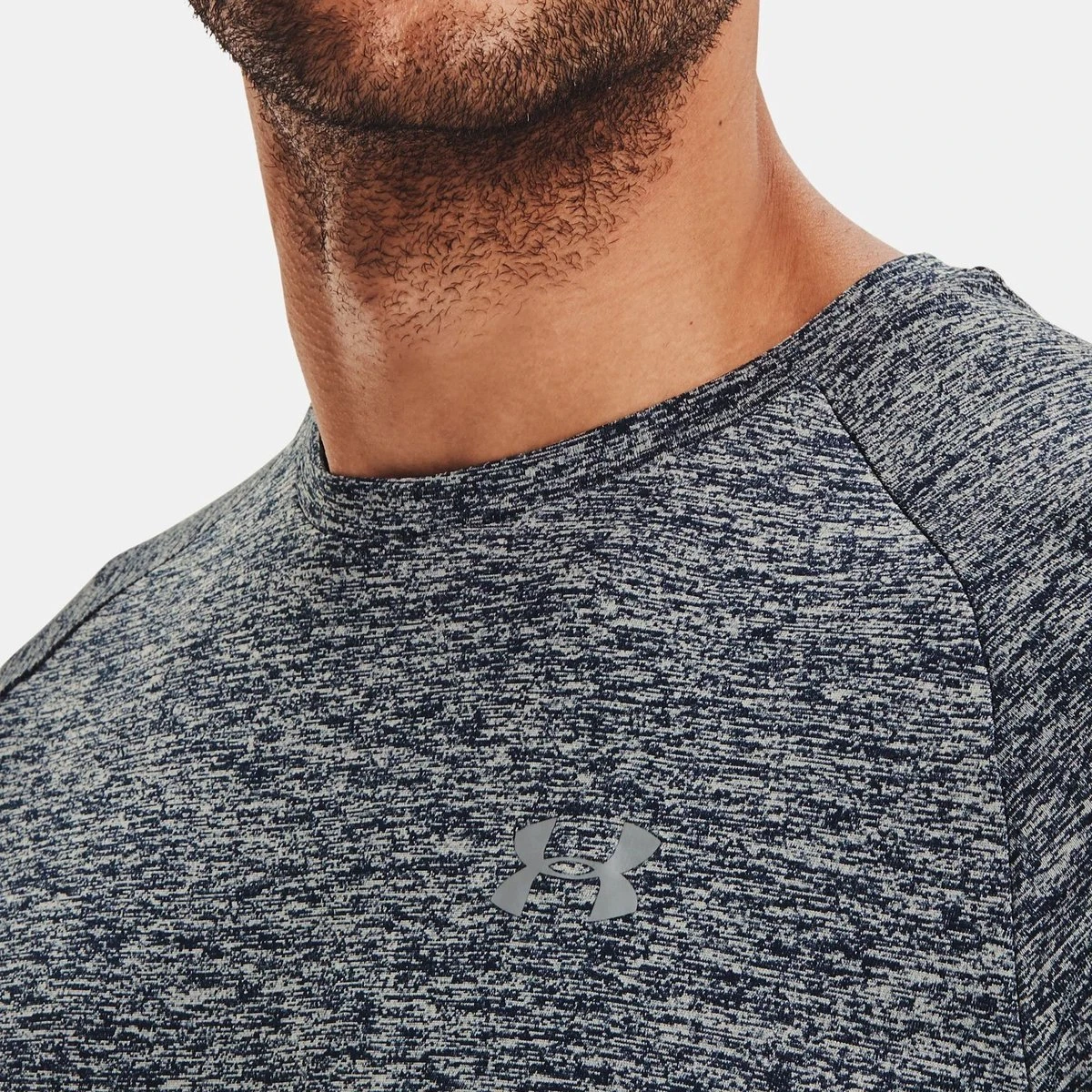 UA Tech™-stof is sneldrogend en voelt zacht en natuurlijk aan;Het materiaal voert zweet af en droogt zeer snel;Nieuwe, gestroomlijnde pasvorm en rondlopende zoom