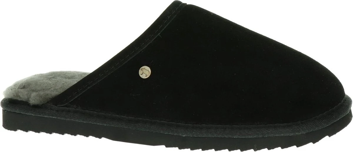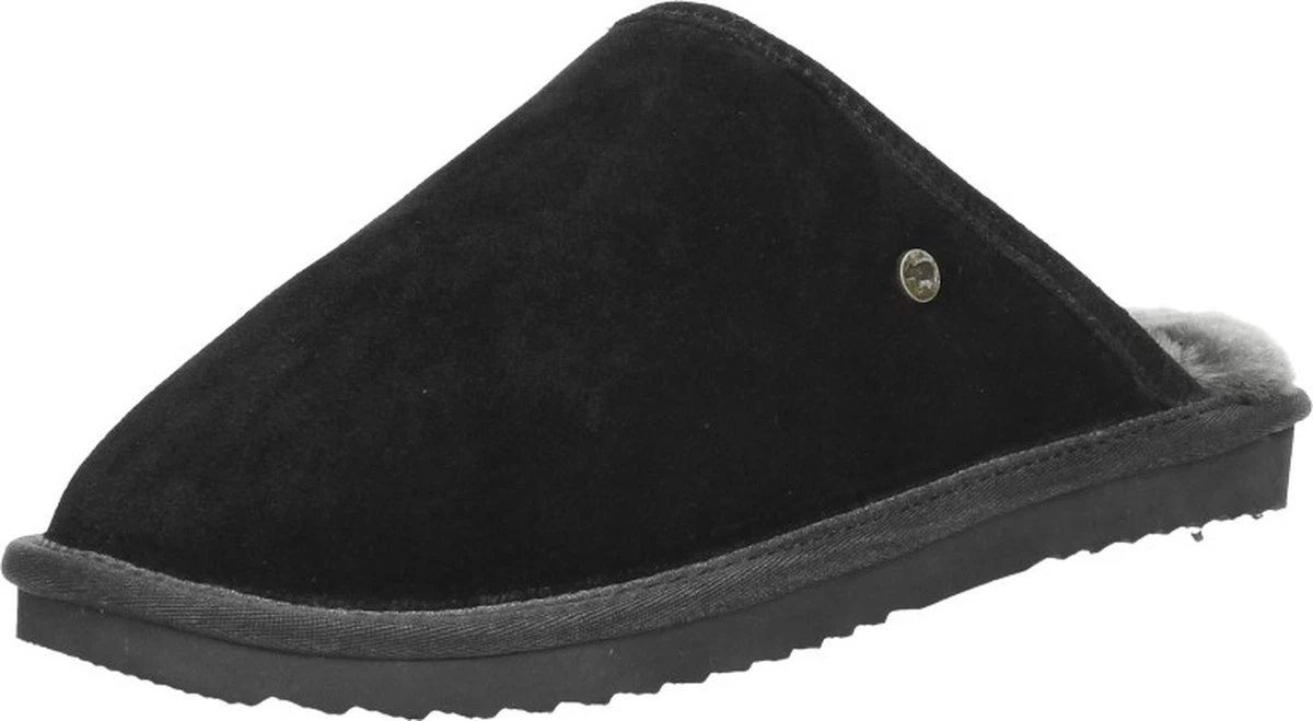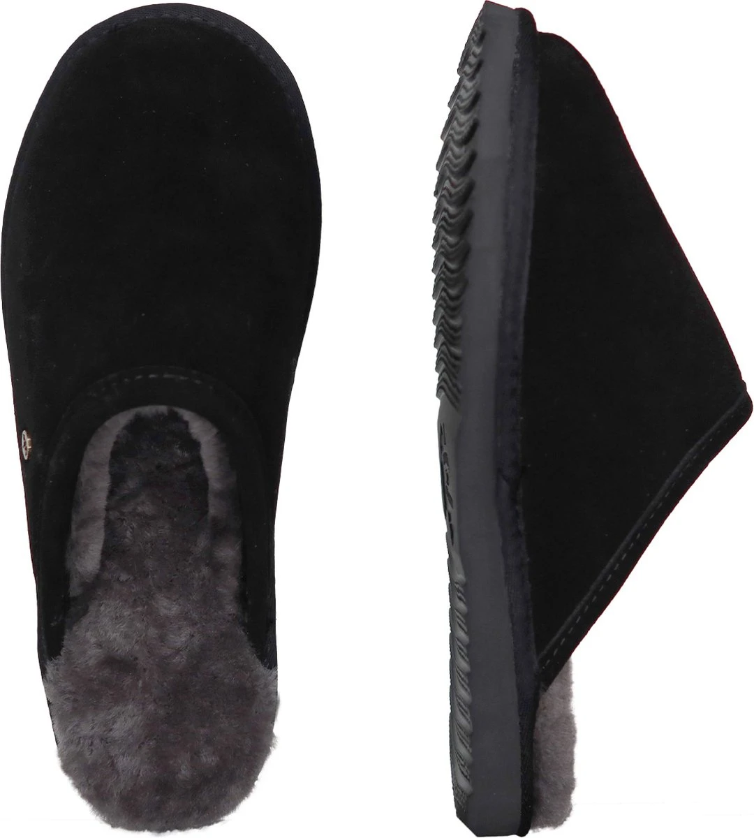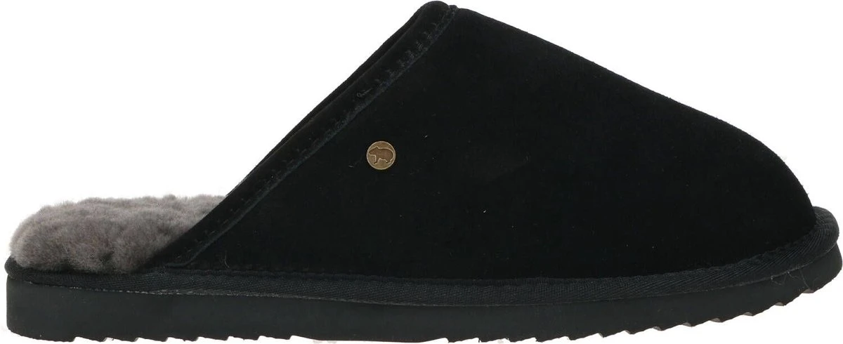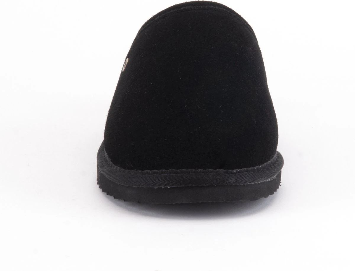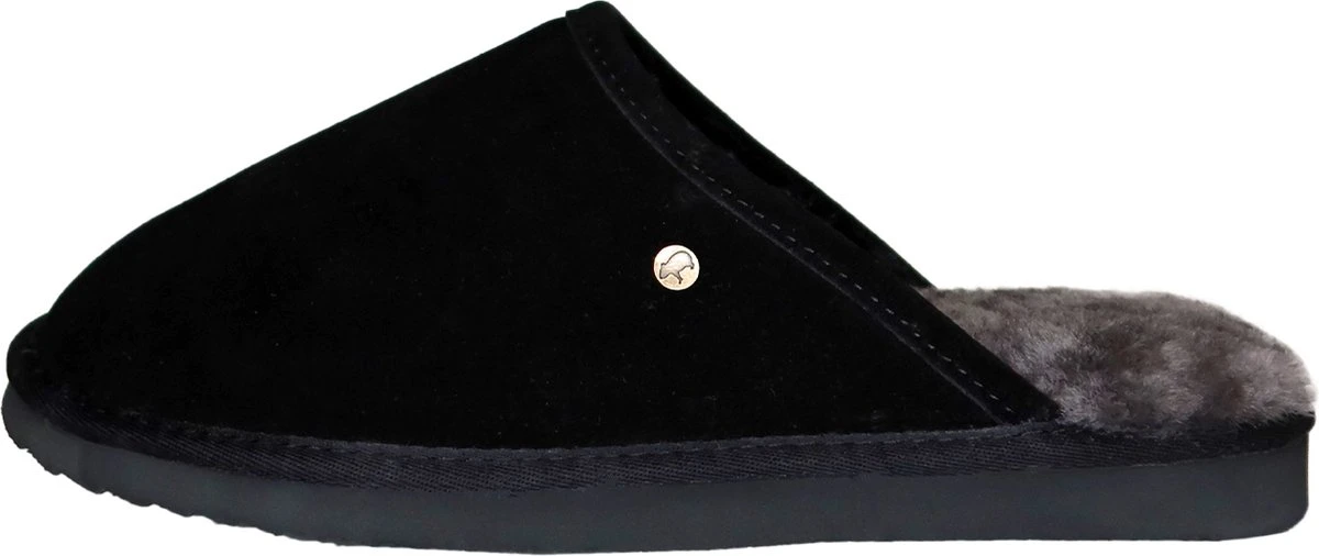 Comfortabele muil van het merk Warmbat. Deze damespantoffel is uitgevoerd in zwart suède en de muil is gemaakt van Merino schapenwol.
