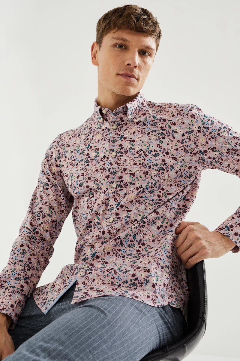 Een slim fit overhemd van een katoenmix met dessin en een knoopsluiting. Het model heeft buttondown kraag en lange mouwen.
