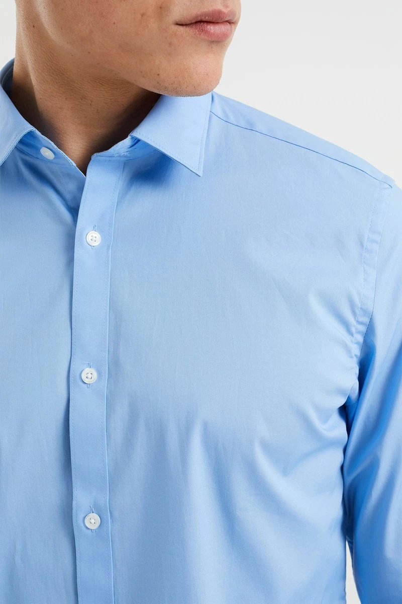 Fine-woven stretch shirt with button closure, long sleeves and reinforced collar and cuffs.