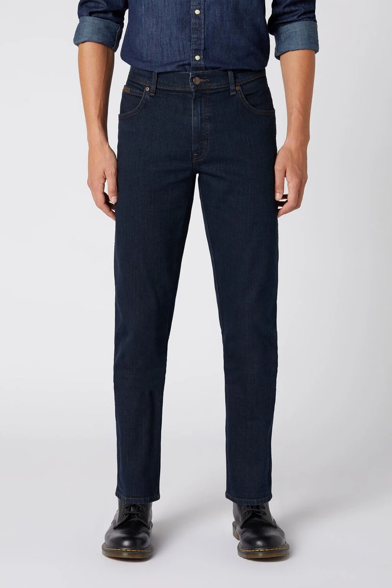 De Texas jeans is een tijdloos, origineel Wrangler-model met een klassieke taille, een ritssluiting en rechte broekspijpen.