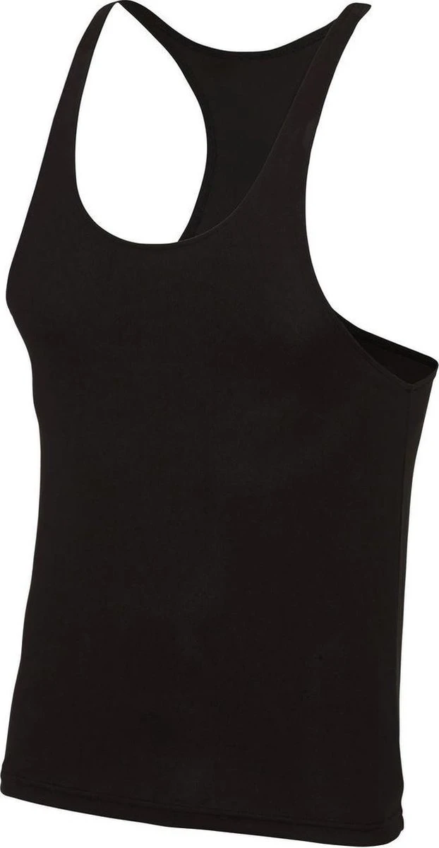 Een sport/fitness shirt/tanktop/haltertop/singlet/hemd in de kleur zwart, geschikt voor heren. Dit shirt heeft een sportieve pasvorm, smalle schouderbandjes en ruime armgaten. Zeer geschikt voor bodybuilders/gewichtheffers. Materiaal: Neotericâ„¢ getextureerde polyester met ingebouwde vochtafvoer. Gewicht: 140 grams. Wasvoorschrift: 30 graden machinewas, niet in de droger, niet strijken. Sporten – Sportkleding – Fitness shirt/hemd – Bodybuilder/gewichtheffers tanktops/haltertops – Sportshirts.